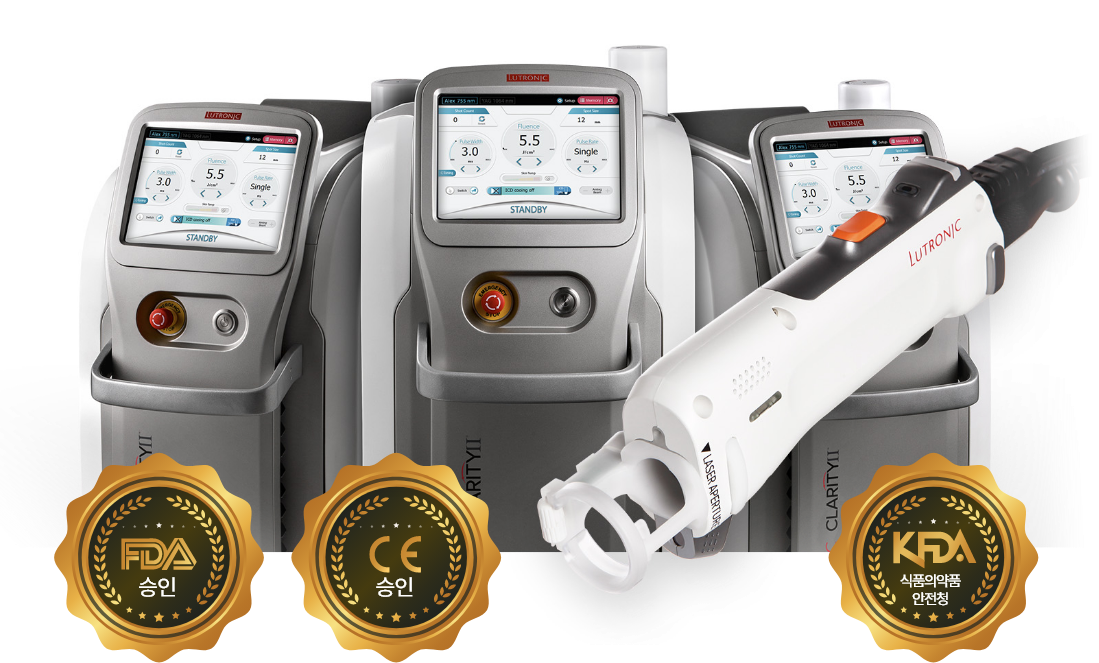 클라리티Ⅱ 레이저는 미국 FDA, 유럽CE, KFDA 인증을 모두 획득하였습니다.