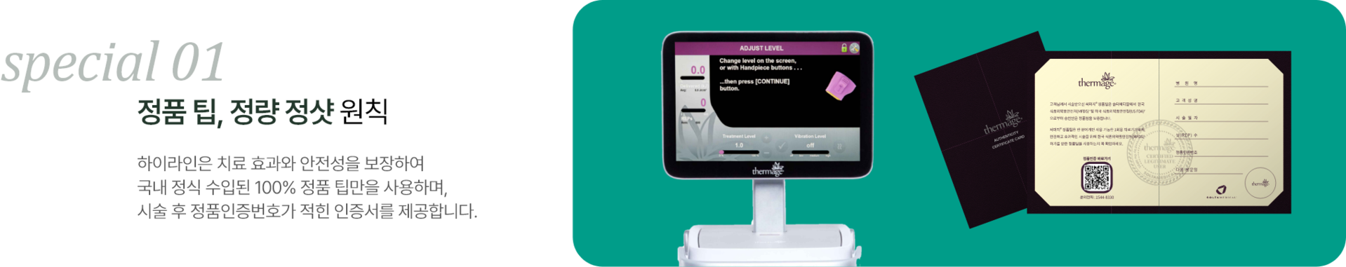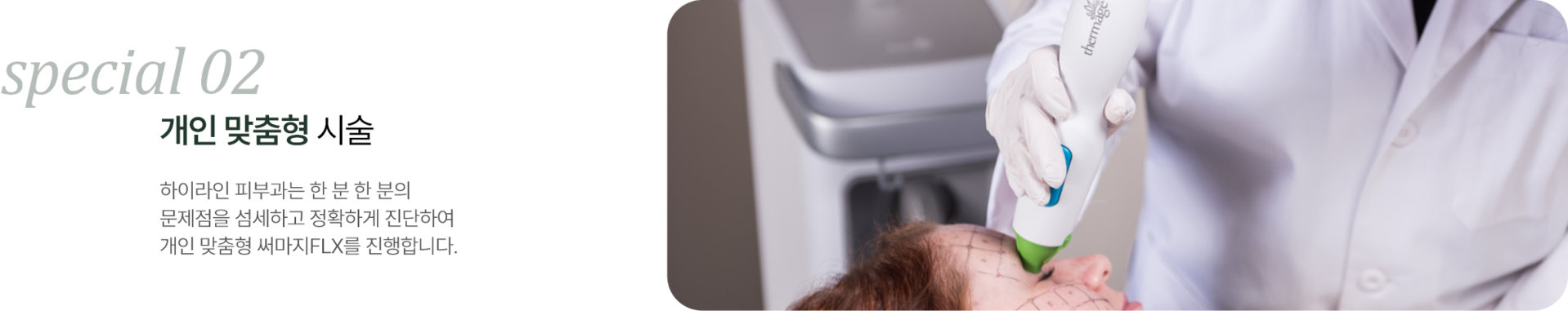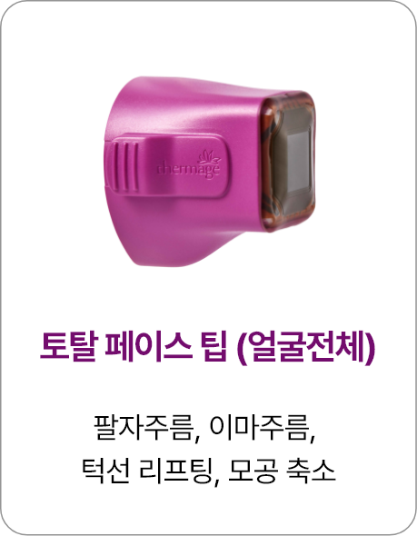 Point 02 부위별 맞춤 케어! 써마지FLX 전용 팁으로 완벽한 리프팅 부위별 전용 팁을 사용하여 각 부위의 특성에 맞는 최적화된 에너지를 전달함으로써 효과적인 리프팅과 탄력 개선을 도와줍니다. |
