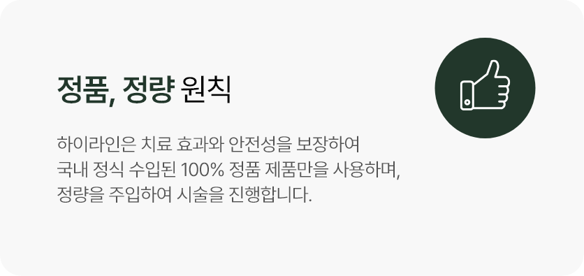 자연스러운 볼륨과 아름다운 동안효과 하이라인의 프리미엄 필러로
